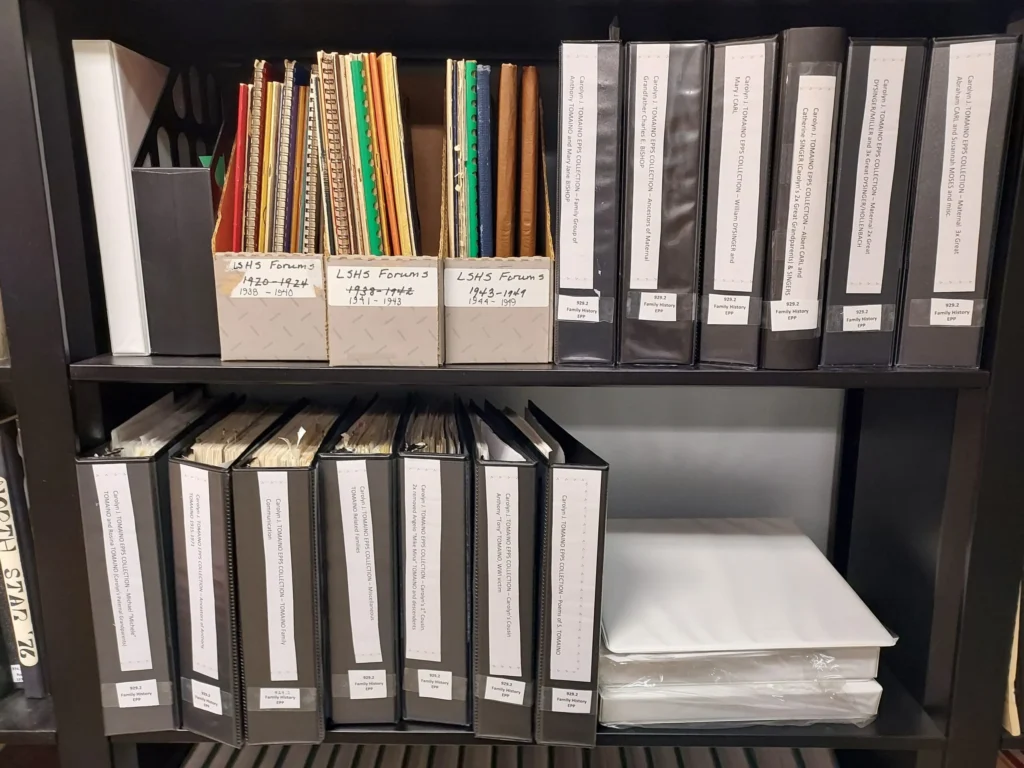 The Niagara County Genealogical Society is pleased to announce the shelving of Part One of the 13 Volume “Carolyn J. TOMAINO EPPS Collection” at the Niagara County Genealogical Society Library, 215 Niagara St. on the second floor of the Niagara History Center in Lockport, NY.
